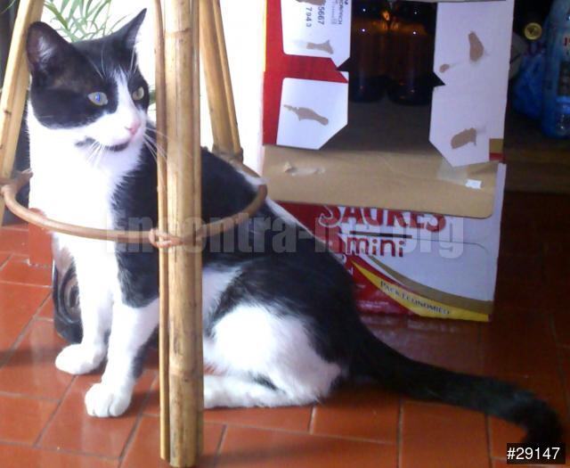 Gato adulto, com pêlo branco e preto.