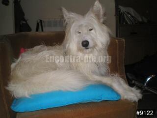 Cadela de 3 anos com pêlo branco, mas está a ganhar umas tonalidades bege/amarelo. Estatura média.